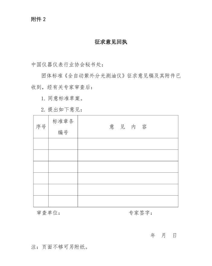 2.  征求意見回執—— 全自動紫外分光測油儀
