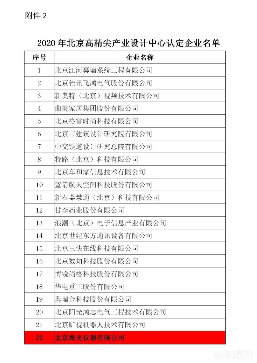 近日,北京市經(jīng)濟(jì)和信息化局公布了2020年北京高精尖產(chǎn)業(yè)設(shè)計(jì)中心認(rèn)定及復(fù)核結(jié)果,北京海光儀器有限公司(簡(jiǎn)稱“海光公司”)榜上有名,被認(rèn)定為北京高精尖產(chǎn)業(yè)設(shè)計(jì)中心。