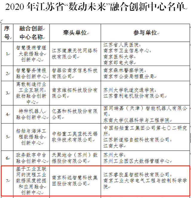 近日,江蘇省工信廳公開發(fā)布了《2020年江蘇省“數(shù)動未來”融合創(chuàng)新中心名單》(蘇工信數(shù)據(jù)〔2021〕10號),南京科遠智慧科技集團股份有限公司(下簡稱“科遠智慧”)牽頭成立的“基于工業(yè)互聯(lián)網(wǎng)的流程工業(yè)數(shù)據(jù)深度挖掘和應(yīng)用融合創(chuàng)新中心”成功入選。