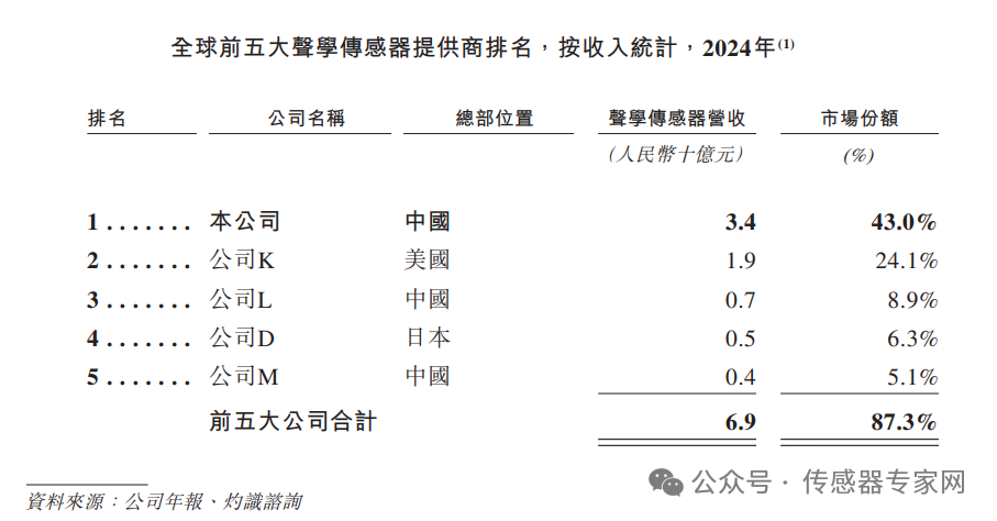 如下圖,公司K疑為樓氏電子,公司L疑為瑞聲科技,公司D疑為TDK,公司M疑為鈺太科技。相關信息參看43%份額稱霸這條傳感器賽道!中國最大MEMS傳感器公司第二次沖刺港股IPO!(底氣在哪里?)