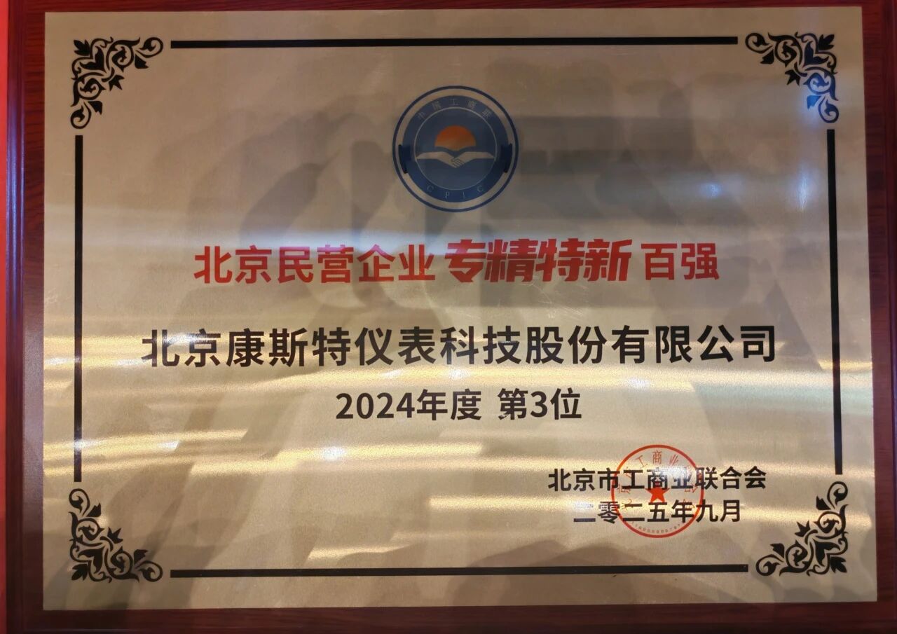 近日,“2025 北京民營企業(yè)專精特新 100 強” 榜單正式發(fā)布,北京康斯特儀表科技股份有限公司憑借出色表現(xiàn)榮獲第三名,展現(xiàn)了其在民營經(jīng)濟(jì)領(lǐng)域的強勁實力。