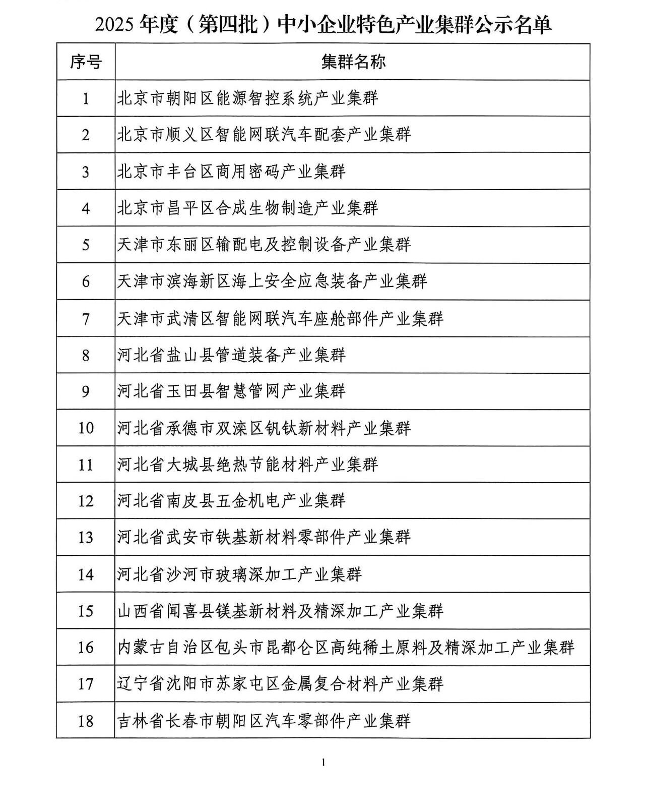2025年度(第四批)中小企業(yè)特色產(chǎn)業(yè)集群公示名單.pdf