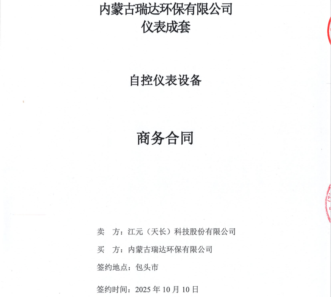 10月10日,江元科技成功簽約內(nèi)蒙古瑞達(dá)環(huán)保有限公司儀表成套供貨合同。本次項目中,江元科技將為瑞達(dá)環(huán)保提供包括84臺PRS雷達(dá)液位計、56臺WDM在線水質(zhì)分析儀表、28臺WDM壓力開關(guān),以及91套JY系列電磁流量計在內(nèi)的全套自動化儀表解決方案。