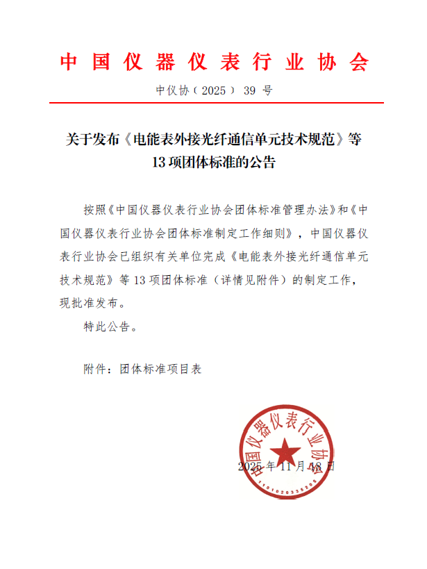 關于發布《電能表外接光纖通信單元技術規范》等13項