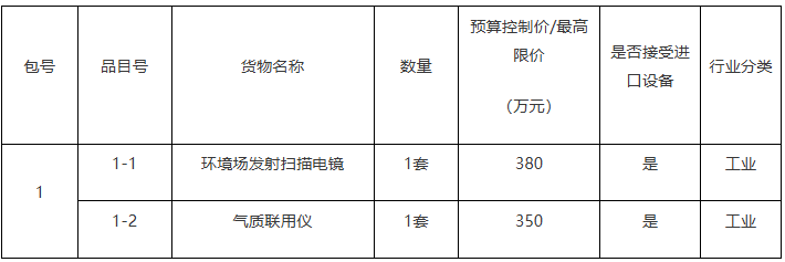 項目名稱:中國農業大學理學院環境場發射掃描電鏡等采購項目